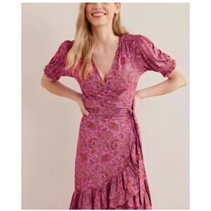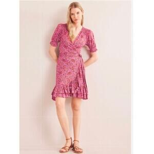 Boden Opulent Pome Ruffle Wrap Jersey Mini Dress Size 2 NWT