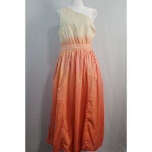 Boden Ora One Shoulder Ombre Midi Dress size 6 cream to coral cotton pockets