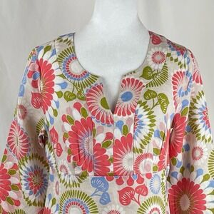 Boden Orange Lime And Cream Floral 100% Linen CottageCore Dress NWOT