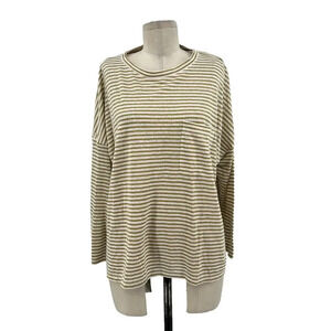 Boden Ottilie Linen Jersey Top Gold Ivory Stripe Size US 14