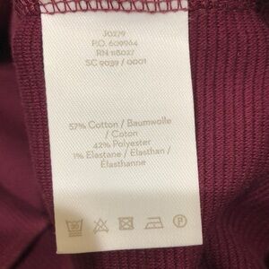 Good condition no stains rips or thinning. Minimal fading, pilling or signs of wear. 3/4 sleeve, boat neck, sheath silhouette knee length dress with side pockets. Pullover style. Stretchy material. Muted dark red color, not vivid or intense colored.