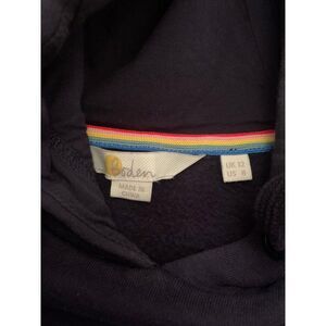 Boden Oversized Hoodie Sweatshirt 8 Navy Blue Rainbow Foil Cuff