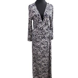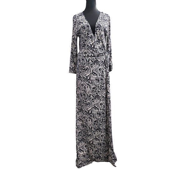 Boden Paisley Maxi Wrap Dress Black White Long Sleeve Boho Women US 10 classic