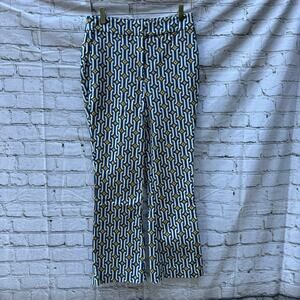 Boden Pants Cropped Flared Sapphire, Azure Geo US Size 6 R Geometric Flare