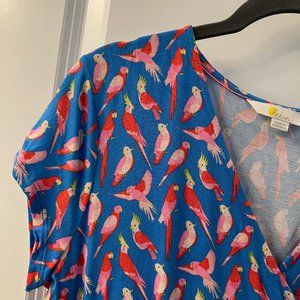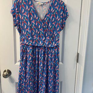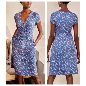 Boden Parakeet Print Lola Jersey Wrap Dress Moroccan Blue Size 8P