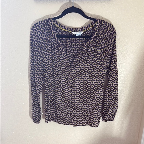 Elegant blouse with a unique pattern. Long sleeves and soft fabric. Ideal for versatile styling.