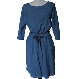 Boden Peggy Drawstring Elastic Waist Shirt Dress with side seam pockets. 3/4 Sleeves. This is the perfect casual dress for travel, beach, shopping.