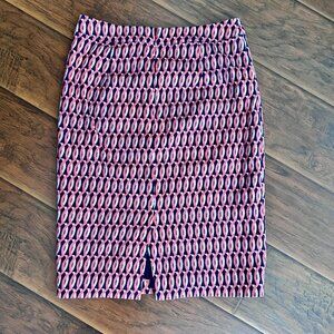 Boden Pencil Skirt Geometric Textured Jacquard blue red pink sz 4