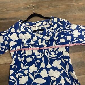 Boden Petite Size 6/6P Floral Casual Linen Tunic Dress Blue White 3/4 Sleeves