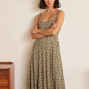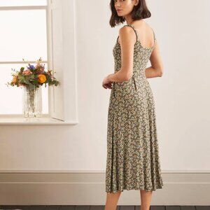 This easy-going sleeveless fit-and-flare jersey dress is a warm-weather wonder. The fabric is soft and smooth, with a hint of comfortable stretch, while the square neckline feels modern and elegant. We've given it a midi length and a flippy skirt with pleats on the front and back for plenty of breezy movement. Green, subtle bird print lets you mix whimsy with practicality.