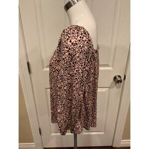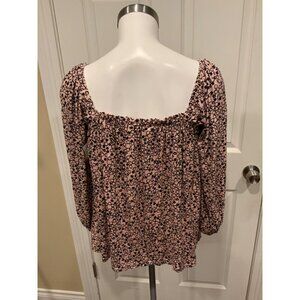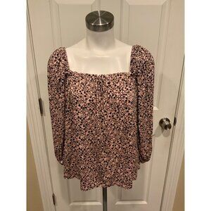 Boden Pink & Black Floral Patterned Off The Shoulder Shirt, Size 4