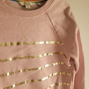 casual light pink Boden womens pullover sweatshirt with gold stripes. in near perfect condition
