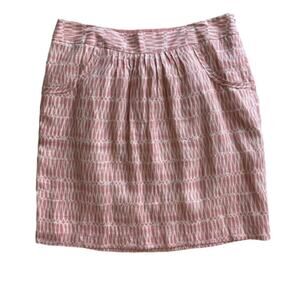 Boden Pink and White Linen Knee Length Skirt - Size 12