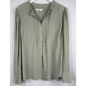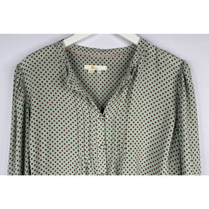 Boden Pintuck Top Women's Sz US 14 Mint Brown Polka Dot Viscose Office Feminine