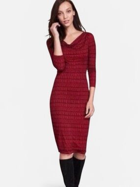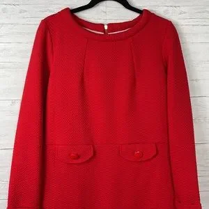 Elegant red dress by Boden. Features long sleeves and button details.
