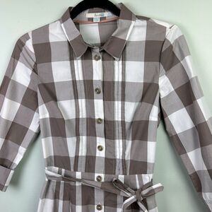 Boden Plaid Brown & White Checked Shirt Dress Button Down Long Sleeve Belted 4