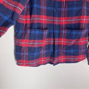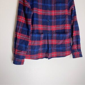 Boden Plaid Buttoned Overshirt Shacket Red Navy Wool Blend Size L Women’s