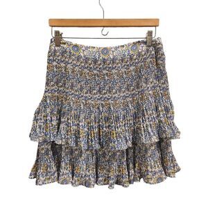 Boden Plisse Mini Skirt Blue Floral Size 8
