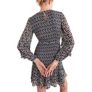 Boden Plisse Swing Mini Dress. Size 4. Color/pattern: French navy poppy vine. Detachable belt. Keyhole and button fastening at back neck. New with tags.