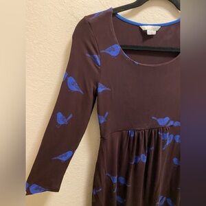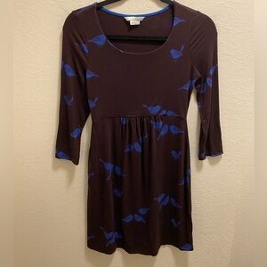 Boden Plum Color Bird Print 3/4 Length Sleeve Tunic Mini Dress Size 4R