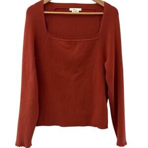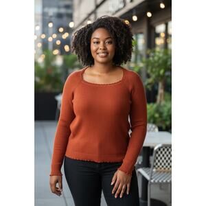 Boden Plus Ribbed Square Neck Knit Sweater Burnt Orange Size 16/18