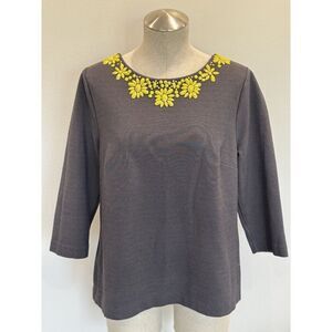 Boden Ponte 3/4 Sleeve Embellished Top in Gray Size 12