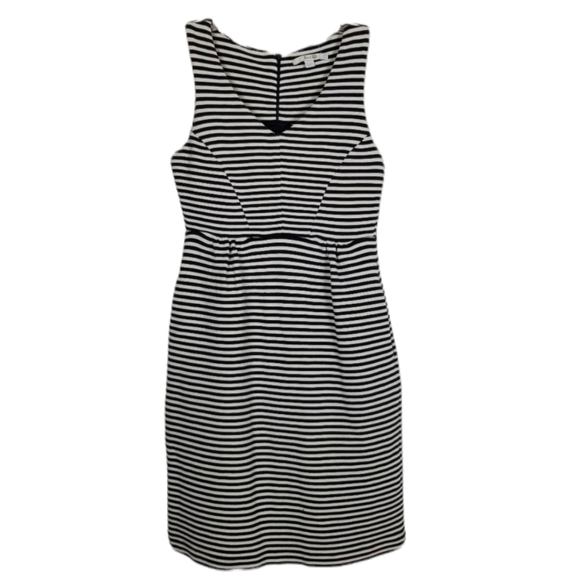 Boden Ponte Knit Dress Structured Pockets V Neck Cotton Blend Stripes Size 8 L