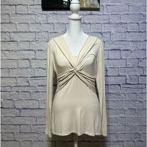 Boden Ponte Twist Front Jersey Top Long-Sleeved Minimalist Boho cream ivory US 6