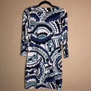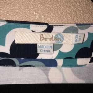 This is an adorable little Boden rhinestone collar dress. It is with what looks like silhouettes of greens, blues, black and white pearl strands. It has 3/4 sleeve and is in excellent condition. Looks barely used if at all. It is a size 6.