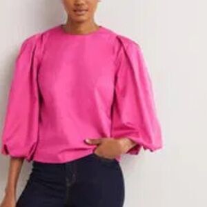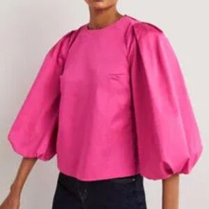 Boden Puff Sleeved Cotton Shirt In Wild Watermelon Size US 10