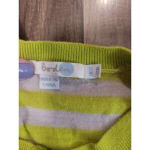 Boden Pullover Henley Sweater Ruffle Green Stripe Wool Women's Sweater Size 8