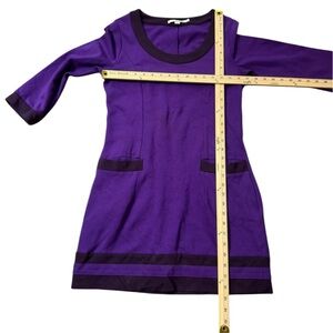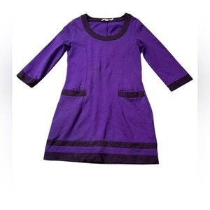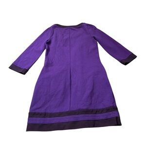 This stylish A-line dress by Boden showcases a vibrant purple color, featuring a classic crew neck and 3/4 length sleeves. Perfect for casual or work settings, it offers a comfortable fit with a touch of elegance.