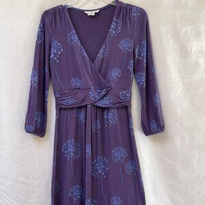 Boden Purple Floral Wrap Style Midi Dress Womens 4 R Stretch Party Boho Cottage