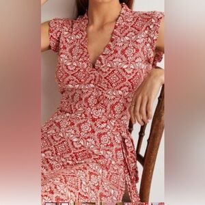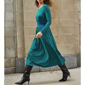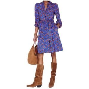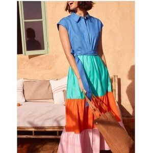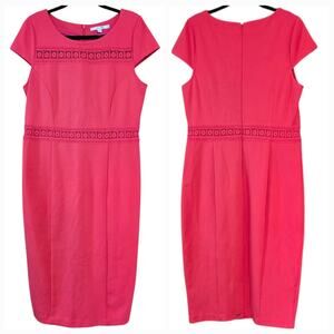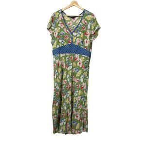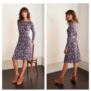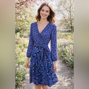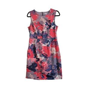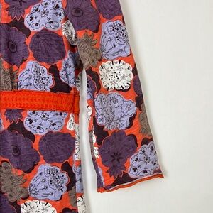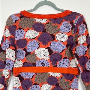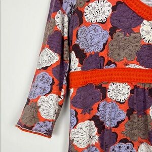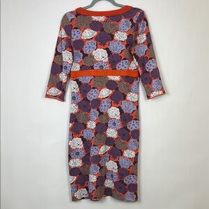 Boden Purple and Orange Sheath Midi Dress with 3/4 Sleeves and V-Neck US6