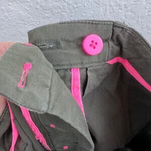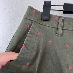 Boden Rachel Chino Shorts Army Green Embroidered Pink Polka Dot Size US 6