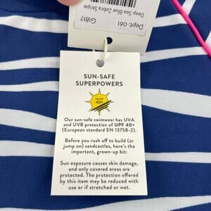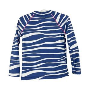 Boden Girls Size 4-5Y Rash Guard Long Sleeve Vest Deep Sea Blue Zebra Stripe NEW. New with Tags.