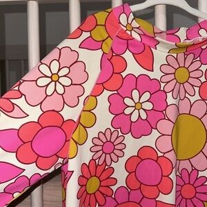 Boden Rashguard Girls Colorful Retro 60s Groovy Floral Swimsuit Long Sleeve