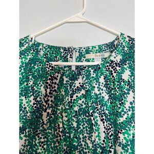 Boden Ravello Silk Blend Cap Sleeve Blouse Top Green Black Pleated Neckline Size 2