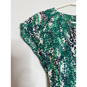 Boden Ravello Silk Blend Cap Sleeve Blouse Top Green Black Pleated Neckline Size 2