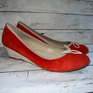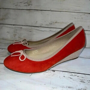 Boden Red Ballerina Wedge Suede Bow Size 41 U.S.9.5 pink