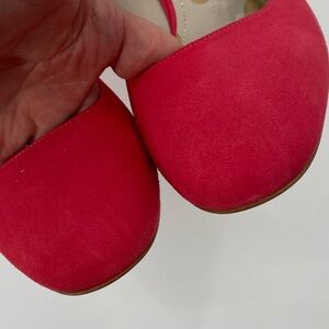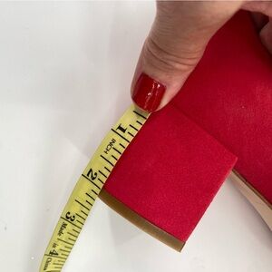 Elegant red block heel shoes. Soft suede finish. Comfortable fit.