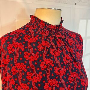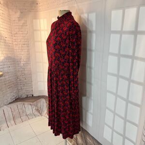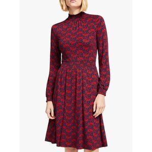 Boden Red Blue Alice Floral High Neck Long Sleeve Jersey Midi Dress Size 14L