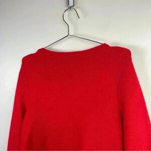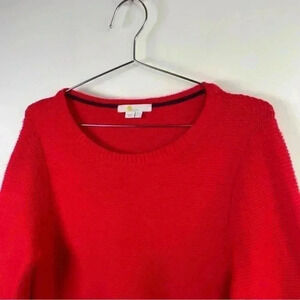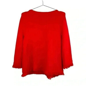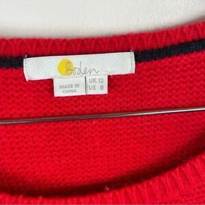 Boden Red Chunky Waffle Knit Fringe Sweater