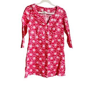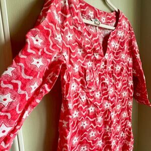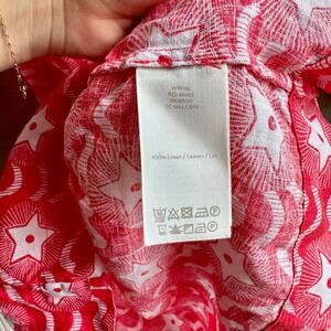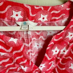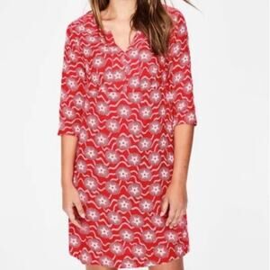 Boden Red Linen Star Mini Dress 3/4 Sleeve Notch Neck Sz 8 Petite