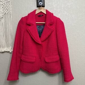 Chic red blazer by Boden. Textured fabric. Classic lapel design. Perfect for formal occasions.