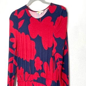 Boden Red and Navy Floral Abstract Print Midi Soft Jersey Dress. Size 6R