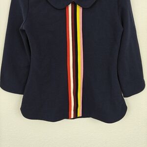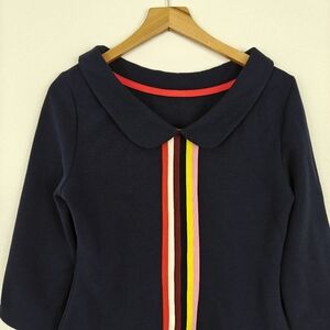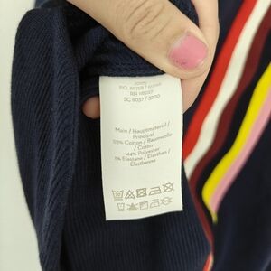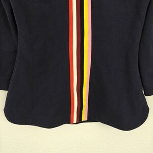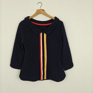 Boden Ribbed Cotton Striped Blouse Tunic 3/4 Sleeves In Navy Blue Size Small