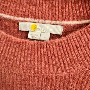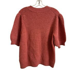 Boden Ribbed Fluffy Top Short Sleeve Puff Sleeve Sweater Red Pink Size Large