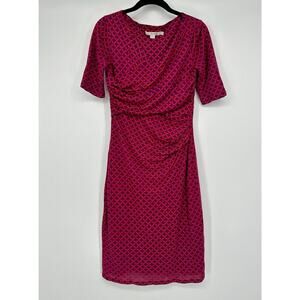 Boden Rita Ruched midi Geo Print Dress V-neck wrap Size 4R