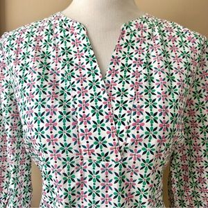 This Roberta Kaftan Tunic Cover-Up Dress from Boden in Ivory Plumeria ditzy graphic floral print (white, green, blue, pink, and black) is crafted from pure cotton. This breezy tunic-style kaftan is cut to a gently floaty shape.